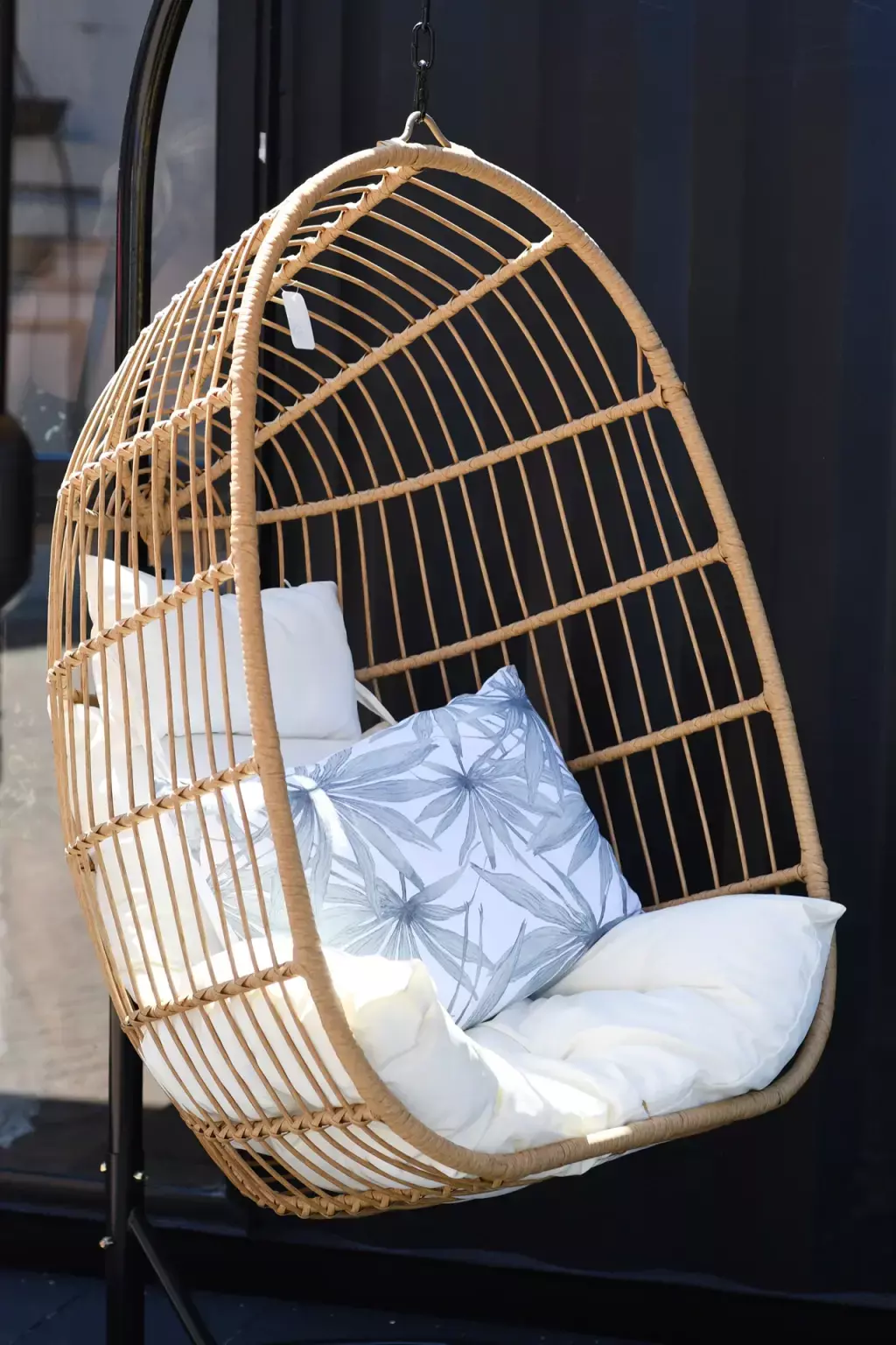 Descubrí la Hamaca Mallorca Beige con Base, la combinación perfecta de diseño y resistencia para tu espacio exterior. Fabricada en rattán sintético color natural, es apta para intemperie, con protección UV que garantiza durabilidad bajo el sol y la lluvia. Su estructura de acero negro, pintada con proceso powder coating, asegura estabilidad y estilo. Incluye cómodos almohadones para que disfrutes el máximo confort. Medidas: 83 x 65 x 114 cm. ¡Ideal para relajarte con elegancia en tu jardín o terraza!